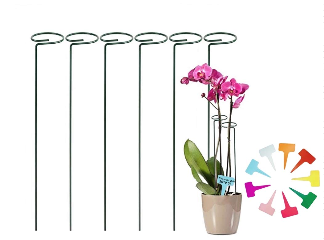 YEEPON 6 Pack 18Inch Plant Support Stake for Tall Plant, Garden Single Stem Flower Support Stake Indoor Plant Cage Support Ring for Peony, Orchid, ...