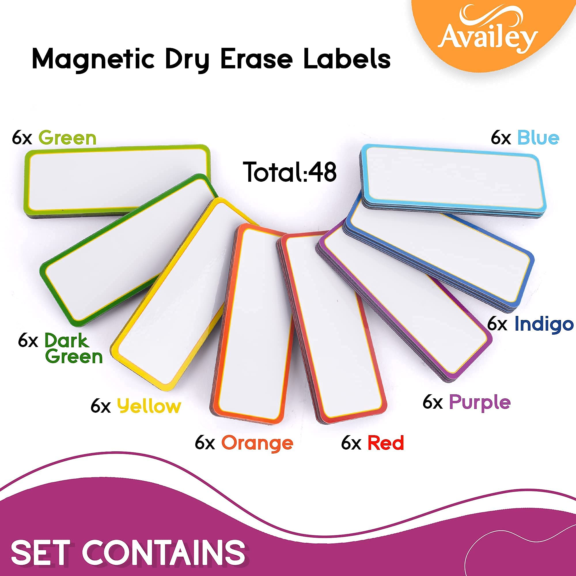 Availey 48 Pieces Magnetic Dry Erase Labels - Reusable Strips for Classroom Home Office Garage Refrigerator Blank Writable Erasable Cards Colored ...