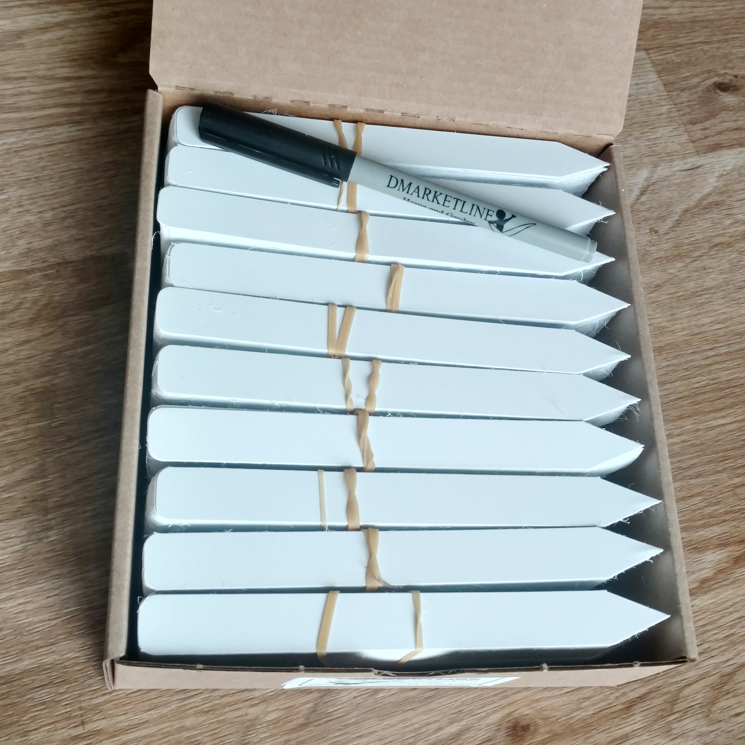 Large white plastic plant labels