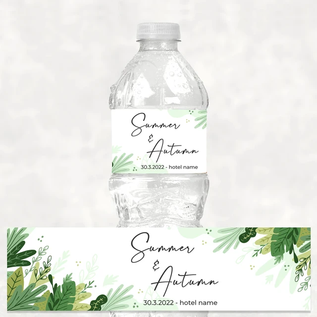 Custom Wedding Water Bottle Labels - Weddingstar Even the water bottles can be fancy with personalised labels and plenty of colour choices that will have everyone hydrating in high style. Autumn Leaf Water Bottle Label €0.50 EUR €0.42 EUR sale 12 colours Romantic Butterfly Water Bottle Label €0.50 EUR €0.42 EUR sale 9 colours Lavish Monogram Water Bottle Label €0.50 EUR €0.42 EUR sale 7 colours